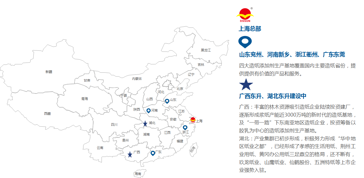 上海东升新材料有限公司成立于2001年,是一家集科研开发、生产经营为一体的新材料生产企业,公司研发中心位于上海,上海东升新材料有限公司及其关联企业先后在山东、广东、河南、浙江、广西、湖北等地设立了生产型基地,主要产品应用于制浆造纸添加剂、日化环保等多个领域。